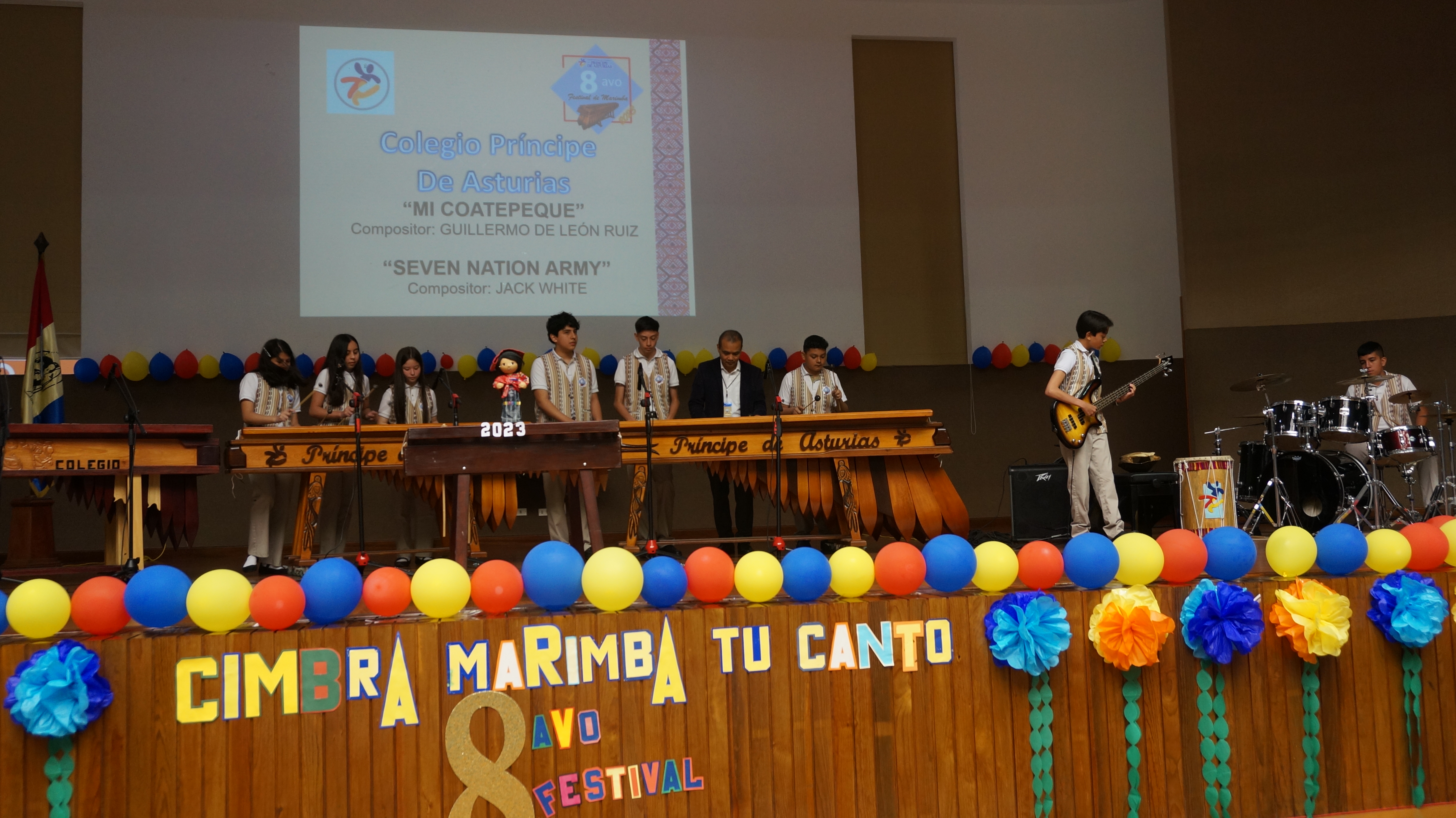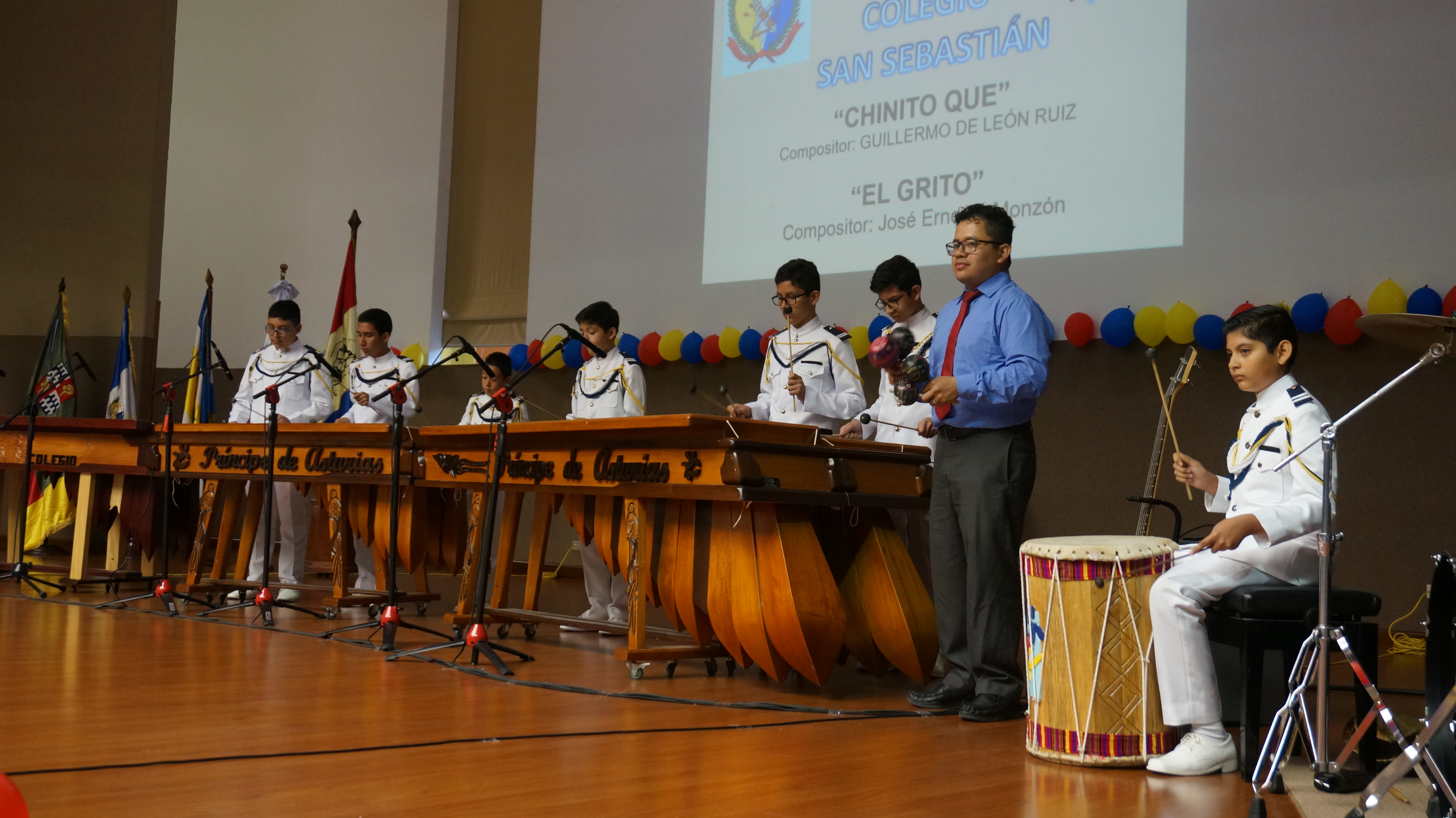 Dando inicio con el homenaje de Rudy Solares Gálvez con su poema “La Marimba”, con la participación excelente de los alumnos ejecutantes de los diferentes colegios, su pudo disfrutar de melodías como: Noche de luna entre ruinas, Cobán, Río Polochic, Frente al toro, etc.