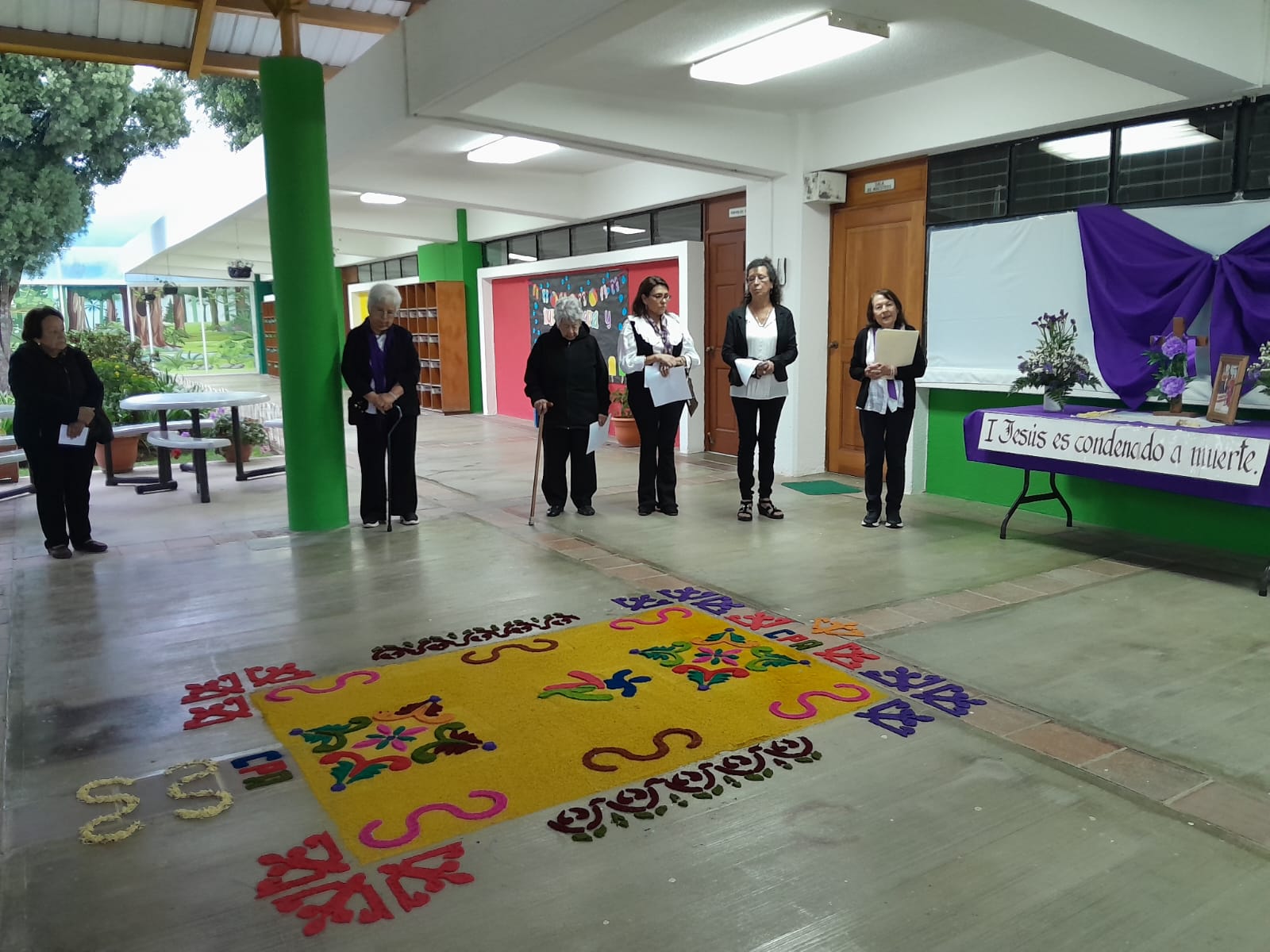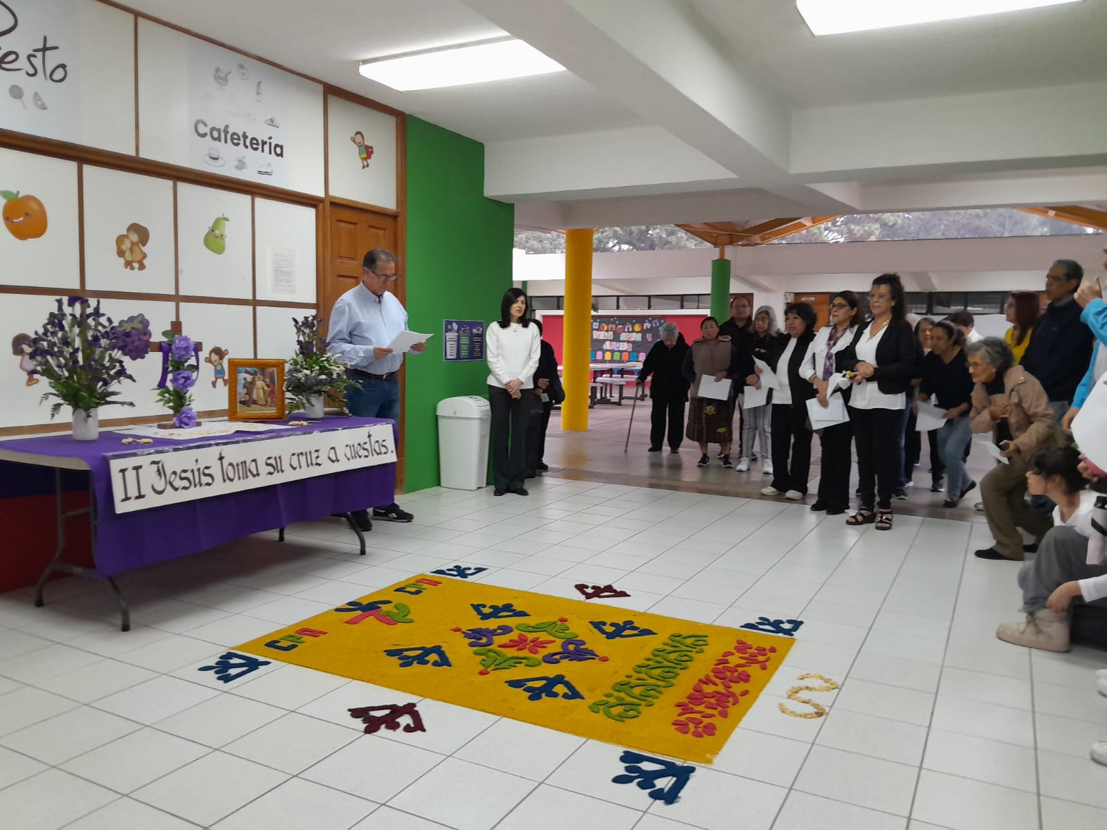 las primeras dos estaciones del viacrucis en el Colegio. El Colegio siempre abre sus puertas para estas